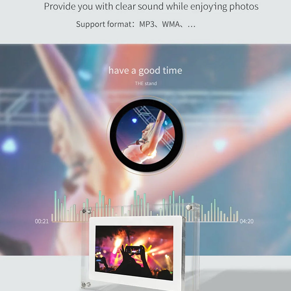 Powerful 1000mAh battery provides 2-3 hours of continuous playback, perfect for extended viewing sessions. Quick charging via Type-C ensures minimal downtime and maximum enjoyment of your digital memories and content.